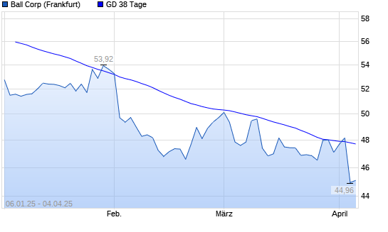 Mit dem Rücksetzer auf 44,96 EUR hat die Ball-Aktie am 03.04.2025 die 38-Tage-Linie nach unten gekreuzt.