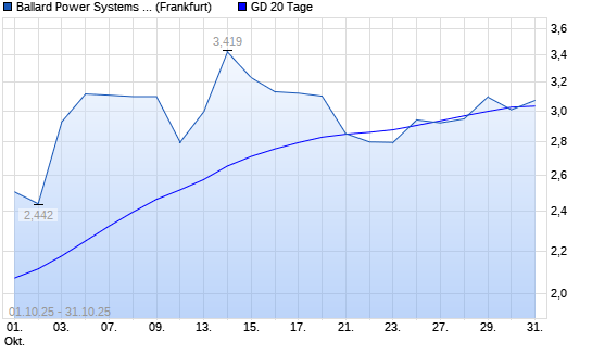 Mit dem Rücksetzer auf 3,01 EUR hat die Ballard Power-Aktie am 30.10.2025 die 20-Tage-Linie nach unten gekreuzt.
