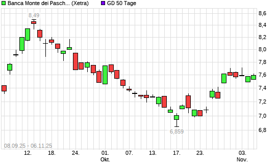 Mit dem Anstieg auf 7,66 EUR hat die Banca Monte Dei Paschi-Aktie am 05.11.2025 die 50-Tage-Linie nach oben gekreuzt.