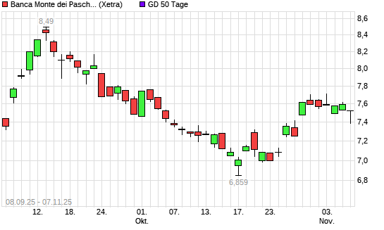 Mit dem Rücksetzer auf 7,55 EUR hat die Banca Monte Dei Paschi-Aktie am 06.11.2025 die 50-Tage-Linie nach unten gekreuzt.
