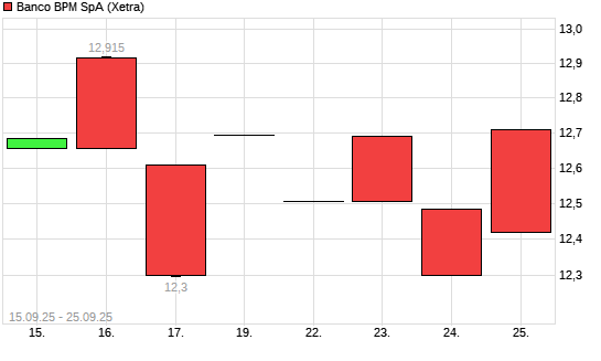 Mit dem Anstieg auf 12,91 EUR hat die Banco BPM-Aktie (ISIN IT0005218380) am 26.09.2025 ein neues 10-Jahres-Hoch erreicht und damit den Kurs vom 16.09.2025 eingestellt.