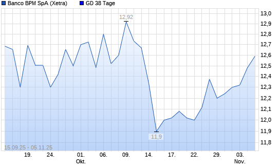 Mit dem Rücksetzer auf 12,48 EUR hat die Banco BPM-Aktie am 04.11.2025 die 38-Tage-Linie nach unten gekreuzt.