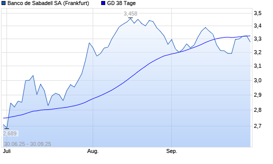 Mit dem Rücksetzer auf 3,32 EUR hat die Banco Sabadell-Aktie am 29.09.2025 die 38-Tage-Linie nach unten gekreuzt.