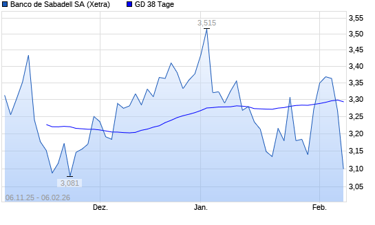 Mit dem Rücksetzer auf 3,30 EUR hat die Banco Sabadell-Aktie am 05.02.2026 die 38-Tage-Linie nach unten gekreuzt.