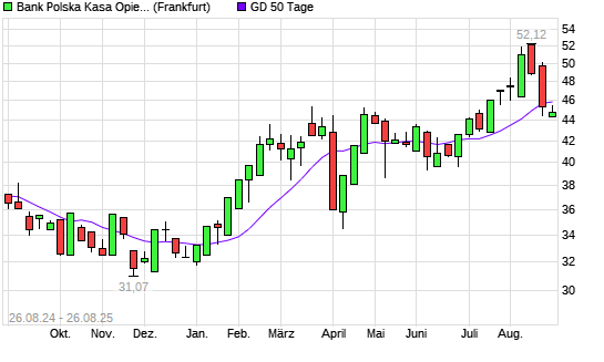 Mit dem Rücksetzer auf 44,13 EUR hat die Bank Pekao-Aktie am 25.08.2025 die 50-Tage-Linie nach unten gekreuzt.