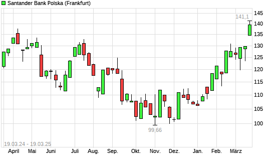 Mit dem Anstieg auf 141,10 hat die Bank Zachodni-Aktie (ISIN PLBZ00000044) am 18.03.2025 ein neues All-Time-High erreicht und damit den Kurs vom 17.03.2025 eingestellt.