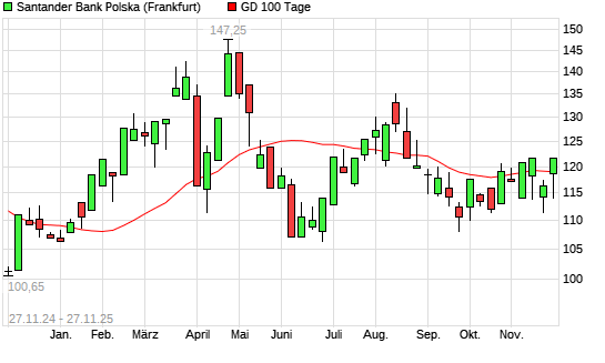 Mit dem Anstieg auf 121,60 EUR hat die Bank Zachodni-Aktie am 26.11.2025 die 100-Tage-Linie nach oben gekreuzt.