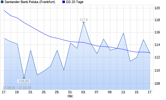 Mit dem Anstieg auf 114,85 EUR hat die Bank Zachodni-Aktie am 16.10.2025 die 20-Tage-Linie nach oben gekreuzt.