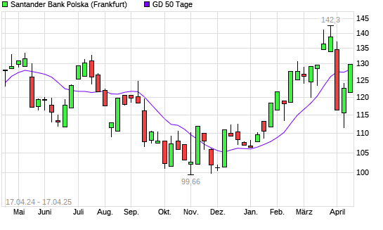 Mit dem Anstieg auf 128,85 EUR hat die Bank Zachodni-Aktie am 16.04.2025 die 50-Tage-Linie nach oben gekreuzt.
