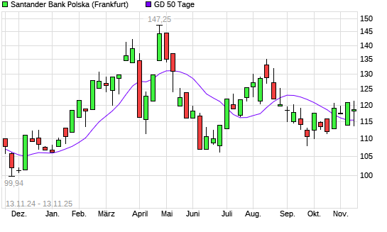 Mit dem Rücksetzer auf 113,75 EUR hat die Bank Zachodni-Aktie am 12.11.2025 die 50-Tage-Linie nach unten gekreuzt.