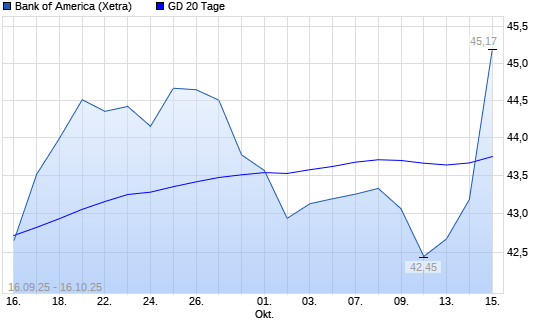 Mit dem Anstieg auf 44,81 EUR hat die Bank of America-Aktie am 15.10.2025 die 20-Tage-Linie nach oben gekreuzt.