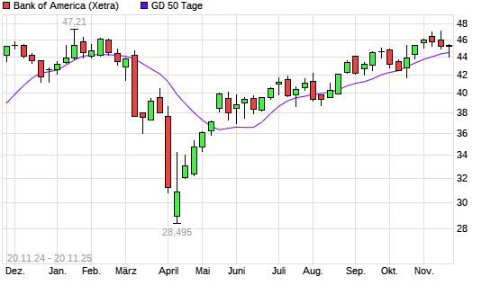 Mit dem Anstieg auf 44,88 EUR hat die Bank of America-Aktie am 19.11.2025 die 50-Tage-Linie nach oben gekreuzt.