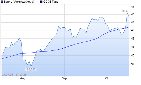 Mit dem Rücksetzer auf 42,93 EUR hat die Bank of America-Aktie am 16.10.2025 die 38-Tage-Linie nach unten gekreuzt.