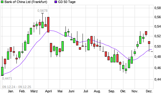 Mit dem Rücksetzer auf 0,49 EUR hat die Bank of China-Aktie am 08.12.2025 die 50-Tage-Linie nach unten gekreuzt.