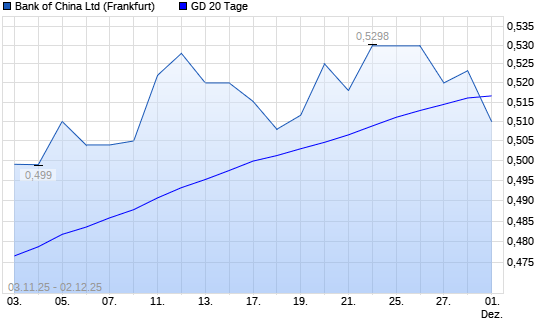 Mit dem Rücksetzer auf 0,51 EUR hat die Bank of China-Aktie am 01.12.2025 die 20-Tage-Linie nach unten gekreuzt.Die Bank of China-Aktie befindet sich seit dem 11.11.2025 im langfristigen ...weiterlesen
