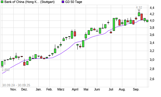 Mit dem Rücksetzer auf 3,94 EUR hat die Bank of China Hong Kong-Aktie am 29.09.2025 die 50-Tage-Linie nach unten gekreuzt.