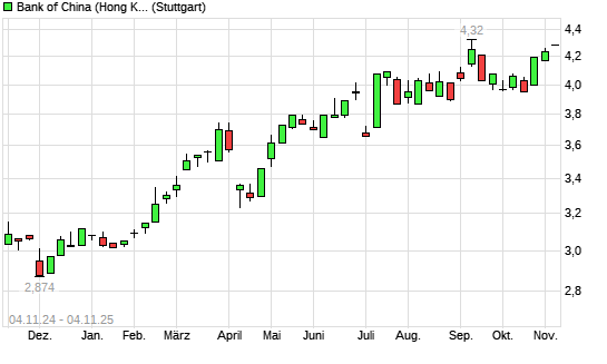 Mit dem Anstieg auf 4,31 EUR hat die Bank of China Hong Kong-Aktie (ISIN HK2388011192) am 03.11.2025 ein neues 5-Jahres-Hoch erreicht und damit den Kurs vom 11.09.2025 eingestellt.Die ...weiterlesen