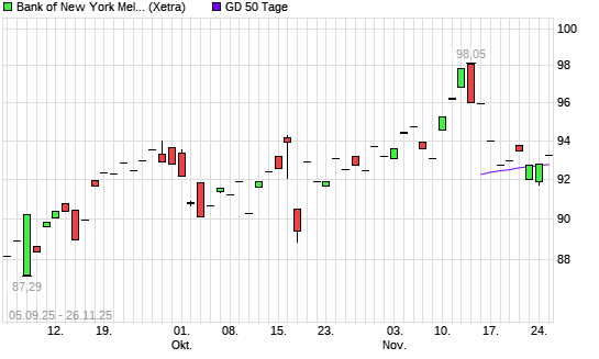 Mit dem Anstieg auf 93,19 EUR hat die Bank of New York-Aktie am 25.11.2025 die 50-Tage-Linie nach oben gekreuzt.
