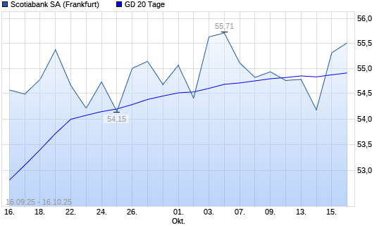 Mit dem Anstieg auf 55,31 EUR hat die Bank of Nova Scotia-Aktie am 15.10.2025 die 20-Tage-Linie nach oben gekreuzt.