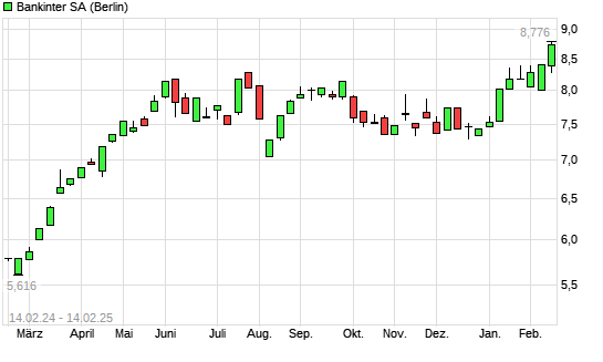 Mit dem Anstieg auf 8,71 EUR hat die Bankinter-Aktie (ISIN ES0113679I37) am 13.02.2025 ein neues 5-Jahres-Hoch erreicht und damit den Kurs vom 11.02.2025 eingestellt.