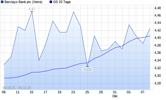 Mit dem Anstieg auf 4,44 EUR hat die Barclays Bank-Aktie am 08.10.2025 die 20-Tage-Linie nach oben gekreuzt.