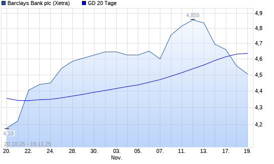 Mit dem Rücksetzer auf 4,49 EUR hat die Barclays Bank-Aktie am 18.11.2025 die 20-Tage-Linie nach unten gekreuzt.