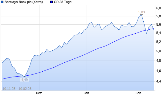 Mit dem Rücksetzer auf 5,42 EUR hat die Barclays Bank-Aktie am 09.02.2026 die 38-Tage-Linie nach unten gekreuzt.