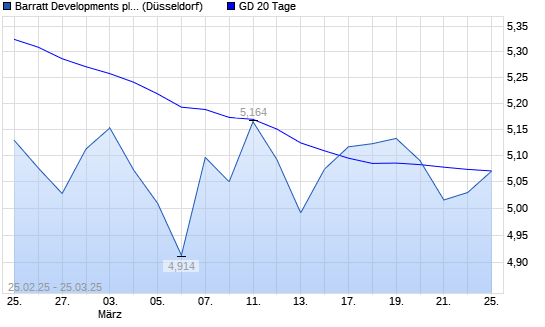 Mit dem Rücksetzer auf 4,91 EUR hat die Barratt Developments-Aktie am 24.03.2025 die 20-Tage-Linie nach unten gekreuzt.