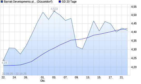 Mit dem Rücksetzer auf 4,30 EUR hat die Barratt Developments-Aktie am 21.10.2025 die 20-Tage-Linie nach unten gekreuzt.