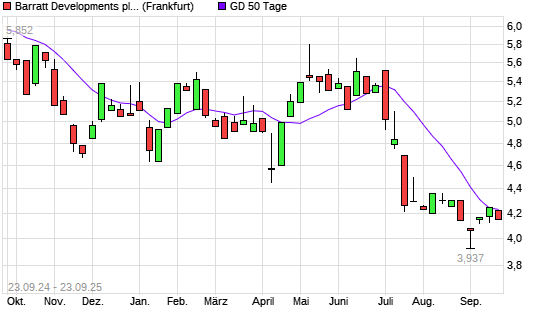 Mit dem Rücksetzer auf 4,22 EUR hat die Barratt Developments-Aktie am 22.09.2025 die 50-Tage-Linie nach unten gekreuzt.
