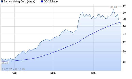Mit dem Rücksetzer auf 26,64 EUR hat die Barrick Gold-Aktie am 22.10.2025 die 38-Tage-Linie nach unten gekreuzt.