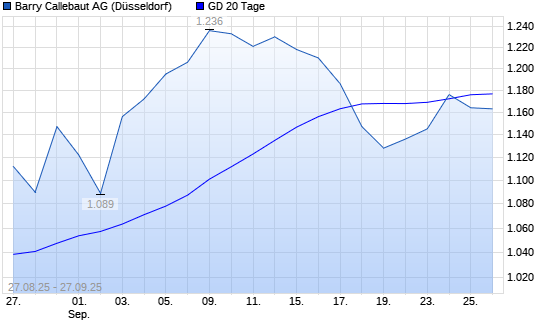 Mit dem Rücksetzer auf 1.170,00 EUR hat die Barry Callebaut-Aktie am 26.09.2025 die 20-Tage-Linie nach unten gekreuzt.