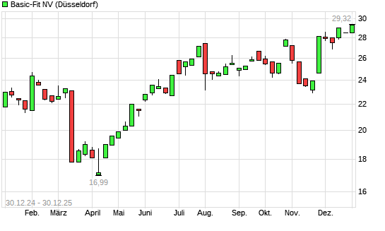 Mit dem Anstieg auf 29,48 EUR hat die Basic-Fit-Aktie (ISIN NL0011872650) am 29.12.2025 ein neues 12-Monats-Hoch erreicht und damit den Kurs vom 19.12.2025 eingestellt.