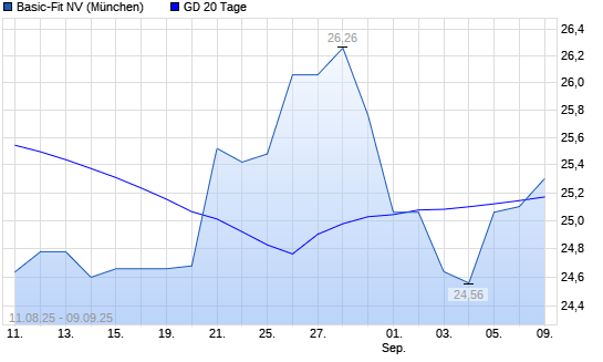 Mit dem Anstieg auf 25,00 EUR hat die Basic-Fit-Aktie am 08.09.2025 die 20-Tage-Linie nach oben gekreuzt.