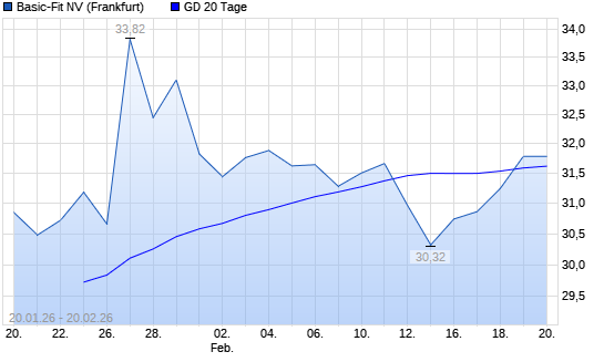 Mit dem Anstieg auf 31,78 EUR hat die Basic-Fit-Aktie am 19.02.2026 die 20-Tage-Linie nach oben gekreuzt.