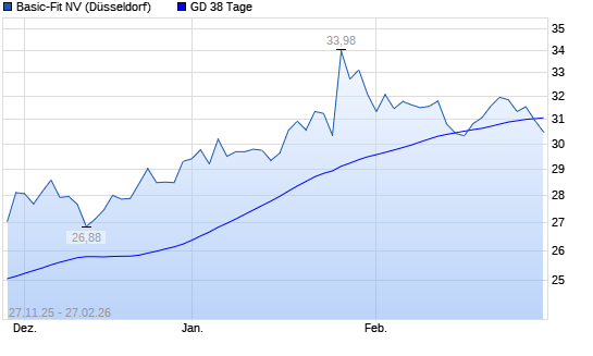 Mit dem Rücksetzer auf 30,90 EUR hat die Basic-Fit-Aktie am 26.02.2026 die 38-Tage-Linie nach unten gekreuzt.