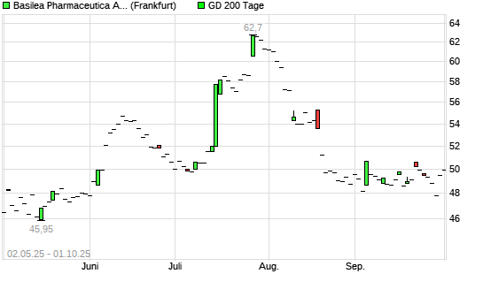Mit dem Anstieg auf 49,50 EUR hat die Basilea Pharmaceutica-Aktie am 30.09.2025 die 200-Tage-Linie nach oben gekreuzt.