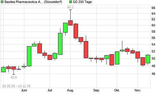 Mit dem Anstieg auf 50,10 EUR hat die Basilea Pharmaceutica-Aktie am 13.11.2025 die 200-Tage-Linie nach oben gekreuzt.