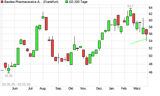 Mit dem Rücksetzer auf 54,00 EUR hat die Basilea Pharmaceutica-Aktie am 19.03.2026 die 200-Tage-Linie nach unten gekreuzt.