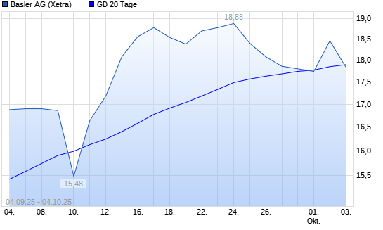 Mit dem Anstieg auf 18,54 EUR hat die Basler-Aktie am 03.10.2025 die 20-Tage-Linie nach oben gekreuzt.