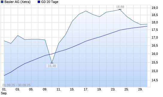 Mit dem Rücksetzer auf 17,56 EUR hat die Basler-Aktie am 29.09.2025 die 20-Tage-Linie nach unten gekreuzt.