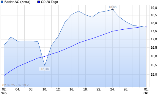 Mit dem Rücksetzer auf 17,54 EUR hat die Basler-Aktie am 01.10.2025 die 20-Tage-Linie nach unten gekreuzt.