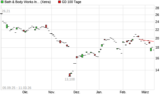 Mit dem Anstieg auf 18,44 EUR hat die Bath & Body Works-Aktie am 10.03.2026 die 100-Tage-Linie nach oben gekreuzt.