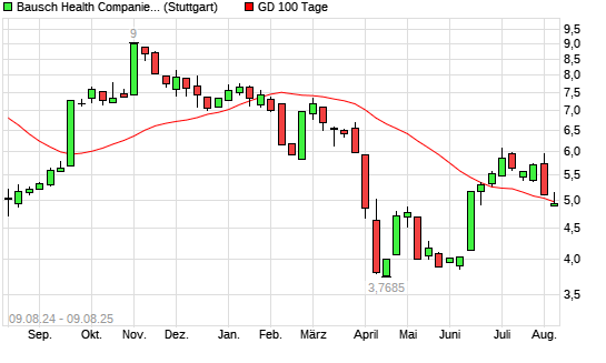 Mit dem Anstieg auf 4,87 EUR hat die Bausch Health Companies-Aktie am 08.08.2025 die 100-Tage-Linie nach oben gekreuzt.