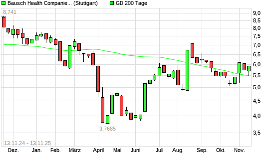 Mit dem Anstieg auf 5,60 EUR hat die Bausch Health Companies-Aktie am 12.11.2025 die 200-Tage-Linie nach oben gekreuzt.