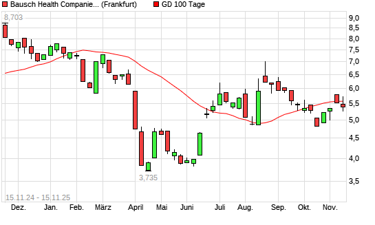 Mit dem Rücksetzer auf 5,39 EUR hat die Bausch Health Companies-Aktie am 14.11.2025 die 100-Tage-Linie nach unten gekreuzt.