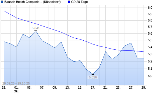 Mit dem Rücksetzer auf 5,05 EUR hat die Bausch Health Companies-Aktie am 28.10.2025 die 20-Tage-Linie nach unten gekreuzt.