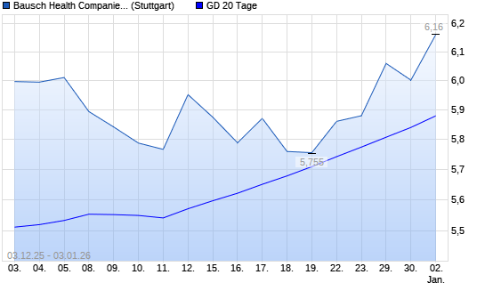 Mit dem Rücksetzer auf 5,63 EUR hat die Bausch Health Companies-Aktie am 02.01.2026 die 20-Tage-Linie nach unten gekreuzt.