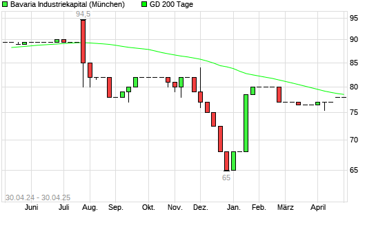 Mit dem Anstieg auf 77,50 EUR hat die Bavaria Industriekapital-Aktie am 29.04.2025 die 200-Tage-Linie nach oben gekreuzt.