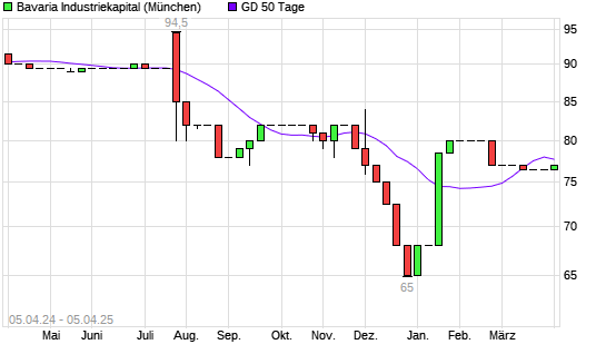 Mit dem Anstieg auf 77,00 EUR hat die Bavaria Industriekapital-Aktie am 04.04.2025 die 50-Tage-Linie nach oben gekreuzt.